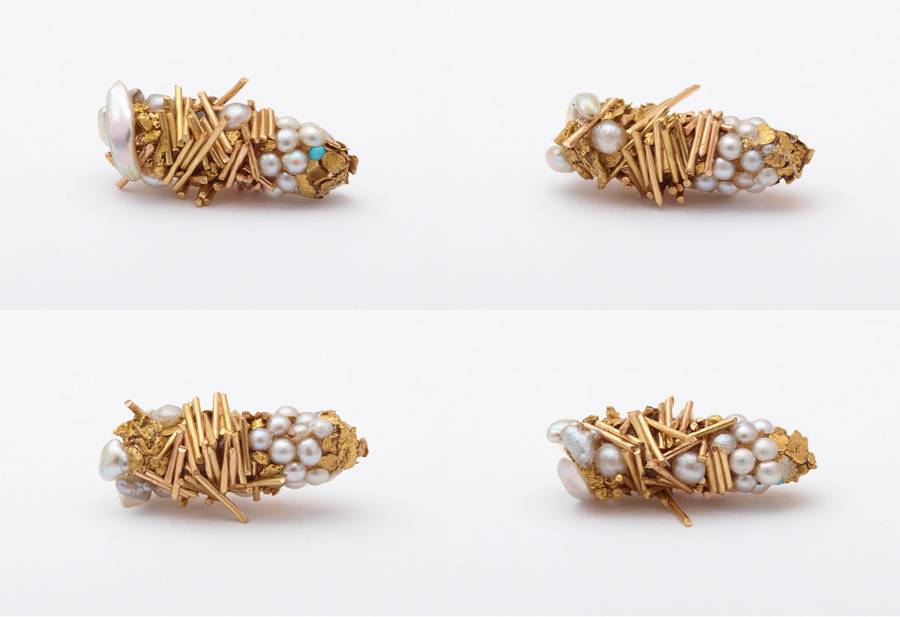 Combining artwork with habitat, experimental artist Hubert Duprat collaborates with caddisflies to create bejewelled, decorative casings, by giving them precious materials, such as gold flakes, pearls and precious gems to build with.