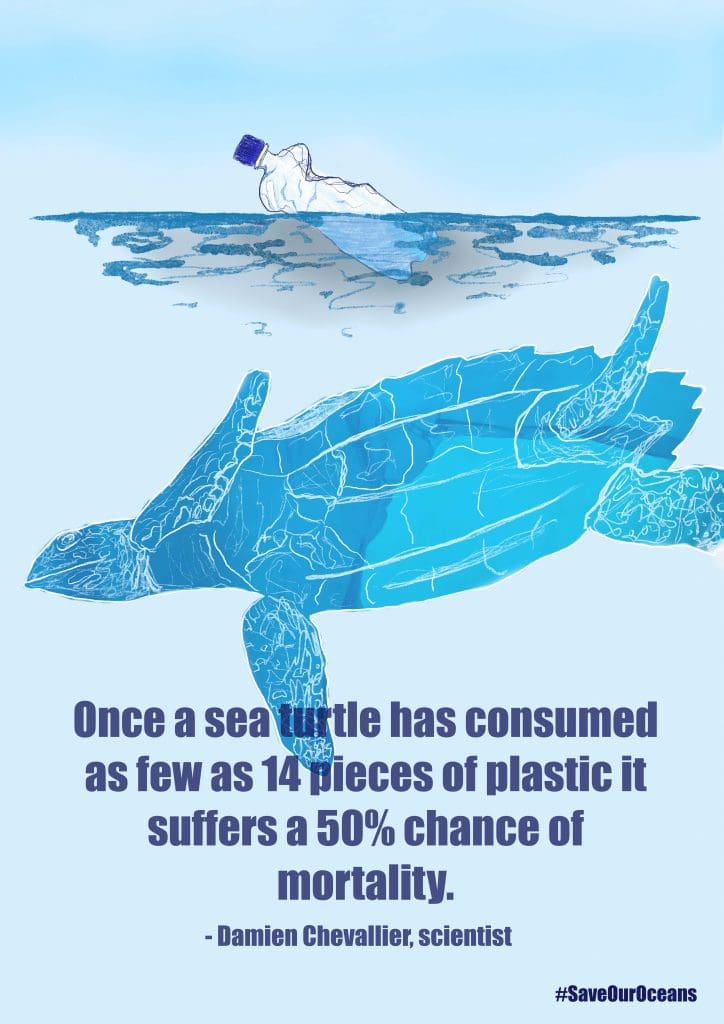 By showing different types of plastic pollution and its catastrophic effects on our oceans, Felicitas aims to inform people through facts about what is really happening to our oceans every day and how plastic pollution is affecting living organisms, as well as influencing climate change. According to Felicitas, her inspiration comes from her passion about the topic and love for marine life, particularly turtles. For the past few years, she has been actively involved in supporting several turtle conservation organisations.