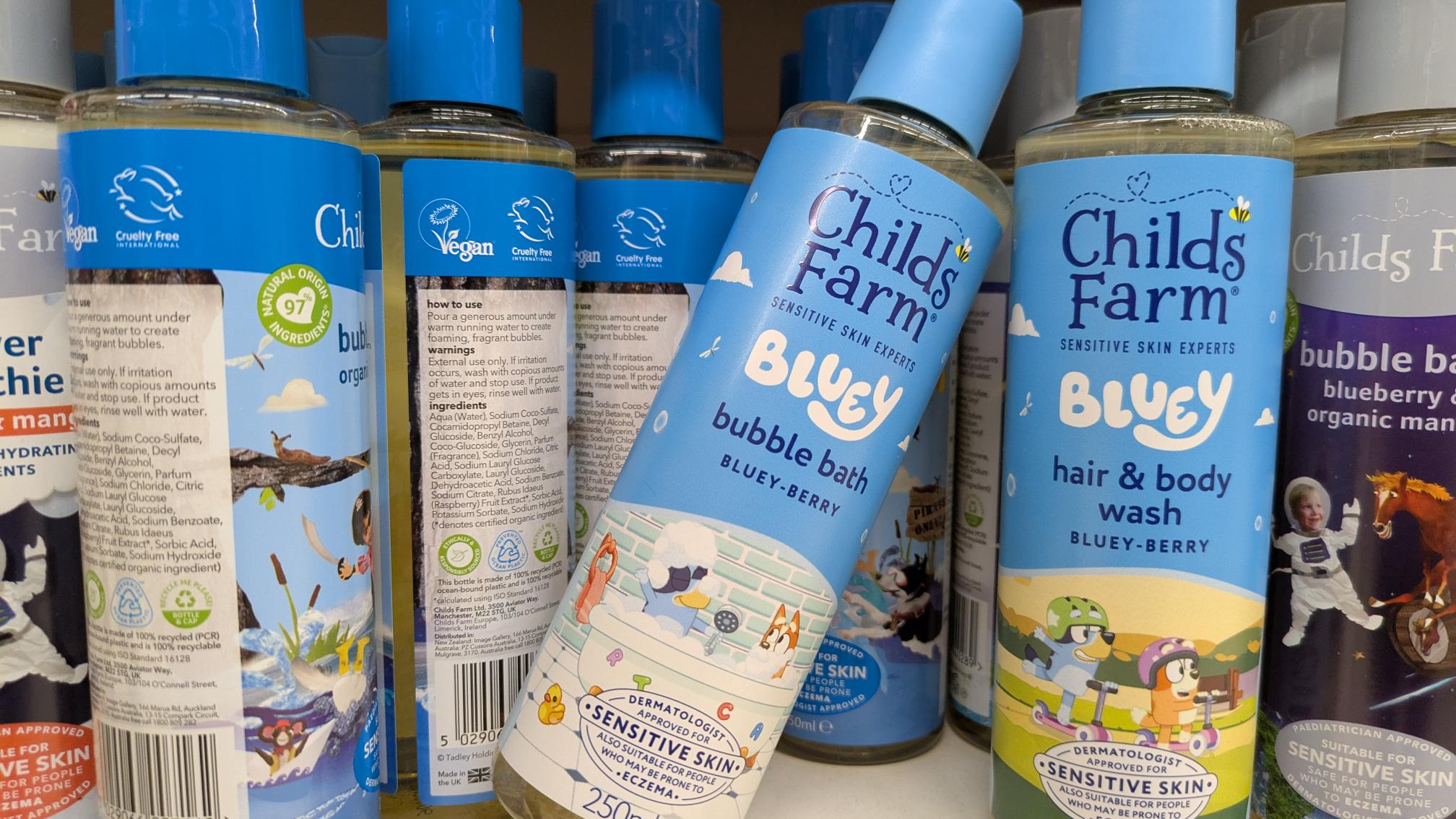 The Childs Farm x Bluey collaboration products are available from Tesco and Amazon now. Hooray!