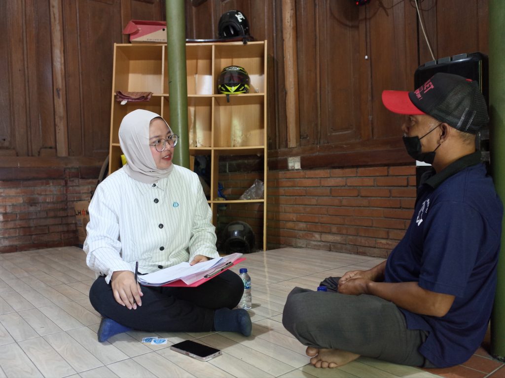 Fieldwork in action: Above, a representative of the Warmadewa Research Centre, and Indah Rosita Dewi from Prevented Ocean Plastic Southeast Asia sit down with first collectors.