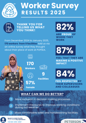 Worker Surveys: We also conduct online surveys with workers. This method provides more subjective, ‘worker voice’ data that goes beyond conventional auditing methods. These surveys are primarily carried out amongst Tier 2 suppliers, for whom a full audit may not yet be suitable.  In 2025 we completed our first worker survey with 170 workers in our Indonesian supply chain.  Based on those results, we implemented several measures to improve working conditions the facilities.